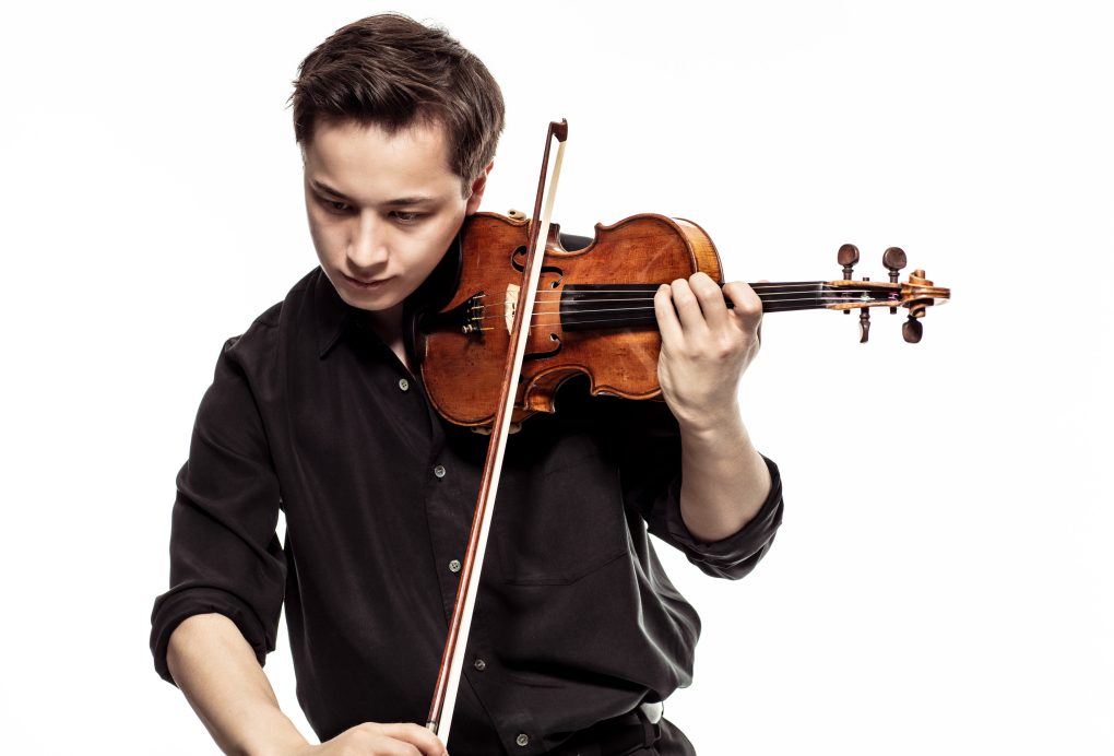 Johan spiller på en Stradivarius fra 1725, Cremona, «Duke of Cambridge, Spohr, ex. Camilla Wicks», generøst stilt til disposisjon av Anders Sveaas’ Almennyttige Fond.